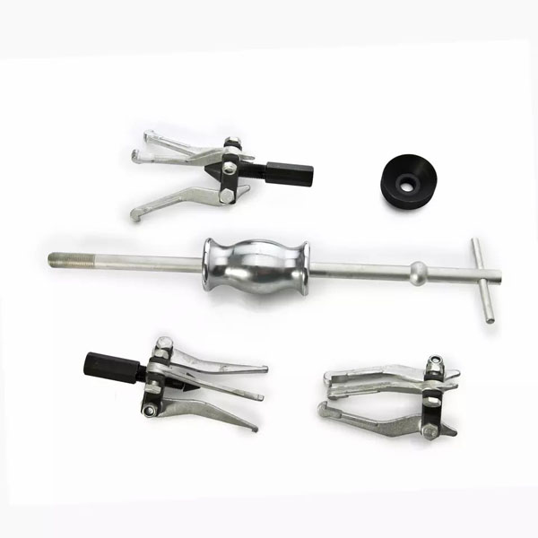 This slide hammer kit includes three sets of 100mm triple leg pullers with locking function, Locking The Nut To Open 3-Jaws And Clip The Bearing and Then Use The Slide Hammer To Pull Out The Bearing.
