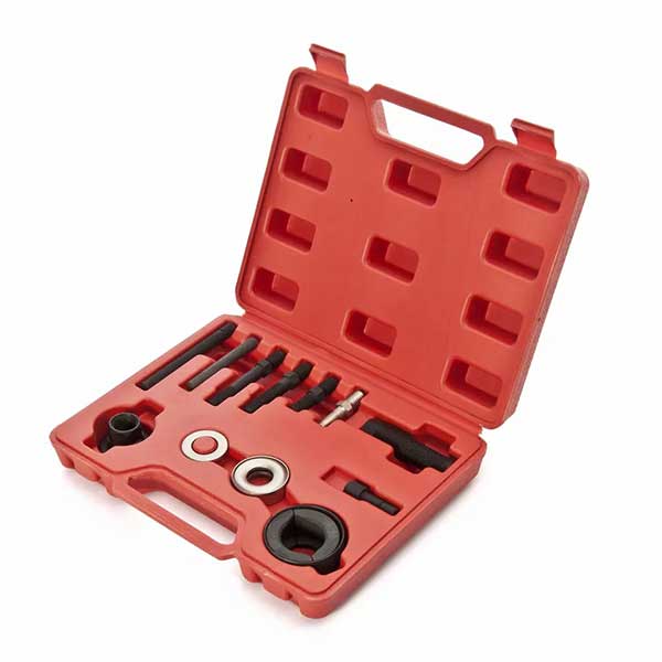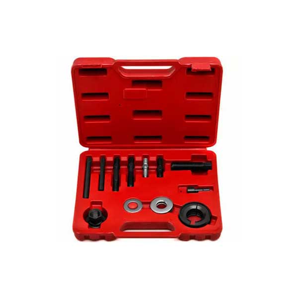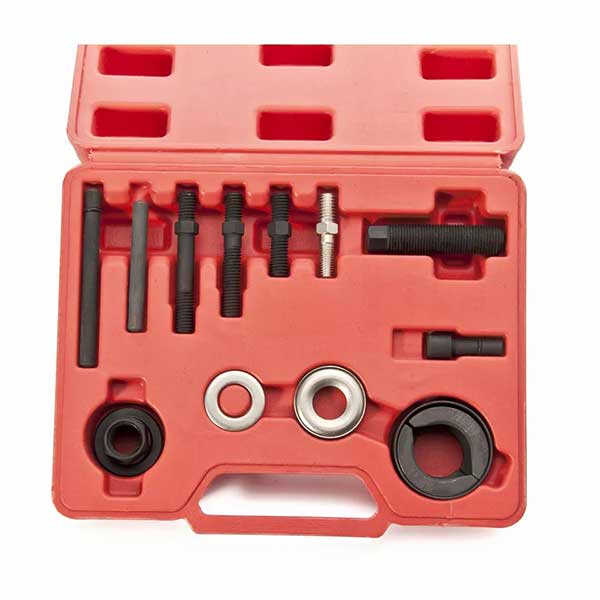 This kit includes various adapters, such as reversible split jaws, to facilitate easy access to pulley flanges on unique and typical style pulleys. Among the included adapters are those that are essential for engines with modular technology, which reverse the jaws to pull the alternator internal bearing.
