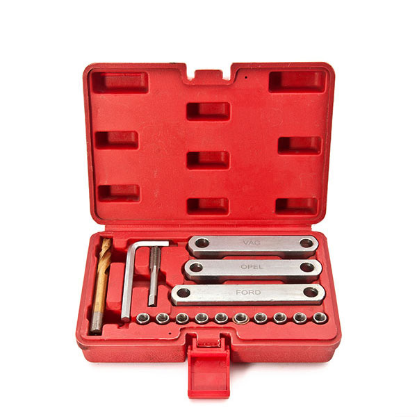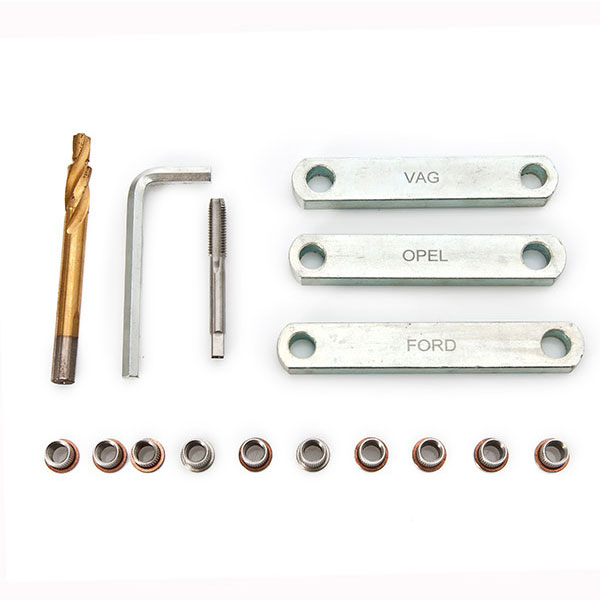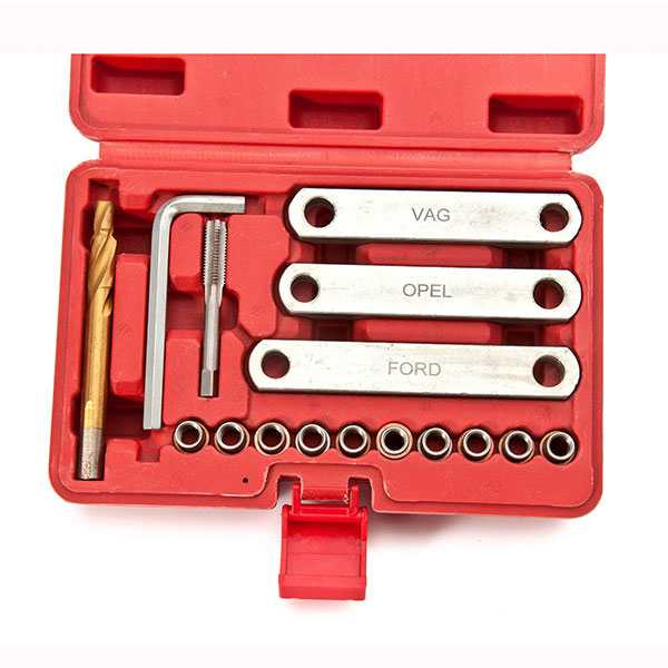 Using this thread set, defective threads can be repaired professionally and quickly.Space guides provided to ensure caliper guides are spaced correctly. Used for Ford, Opel, VW, Audi.