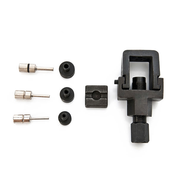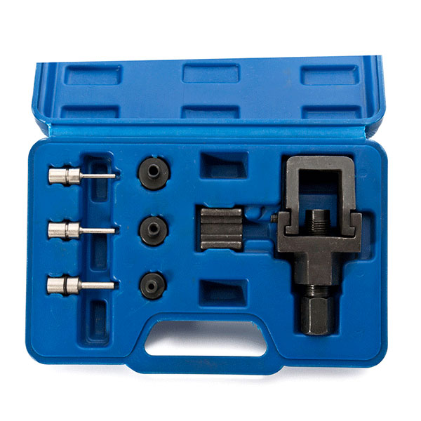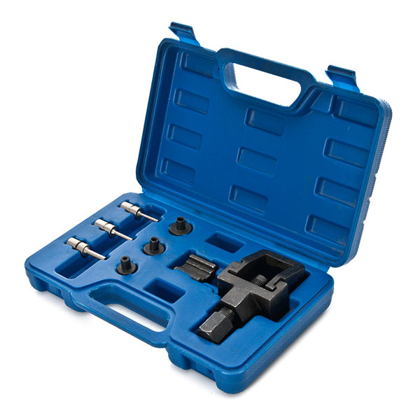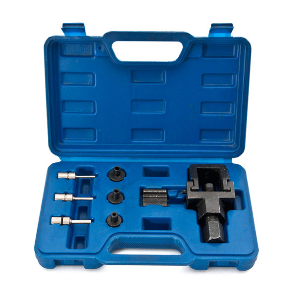 Special tool for breaking, pressing and riveting any broken motor chain safely and easily.