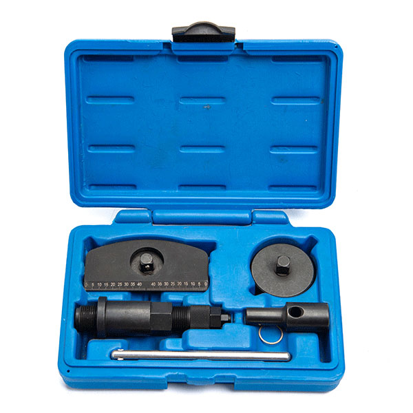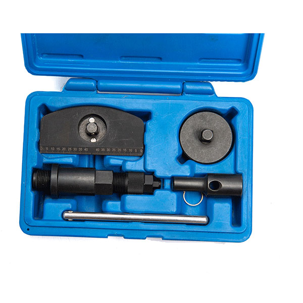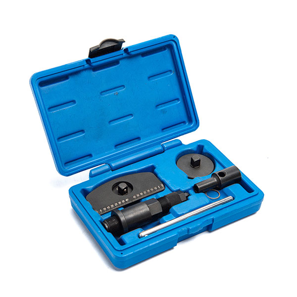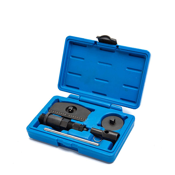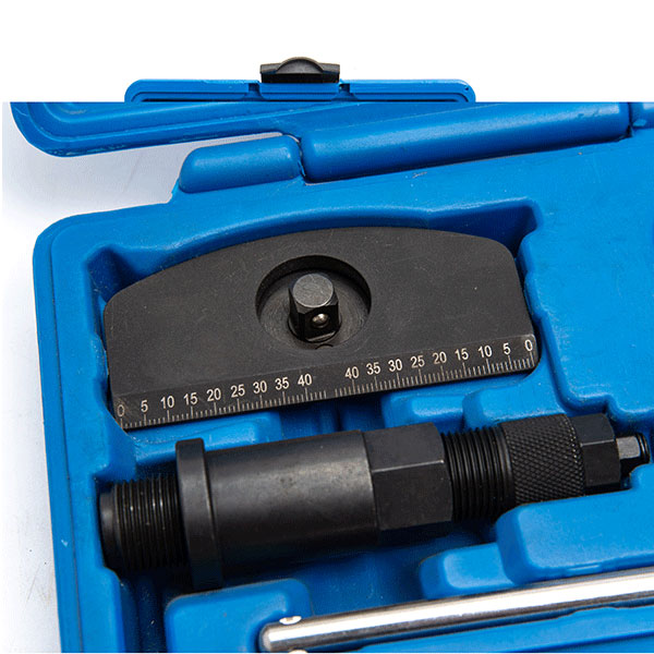 Insert the universal pin adapter into the 3/8'' drive section of the center screw and yoke assembly. Next, slot the push plate onto the same section (with the ruler facing inward) and slide it over the center screw and yoke holder assembly before tightening.